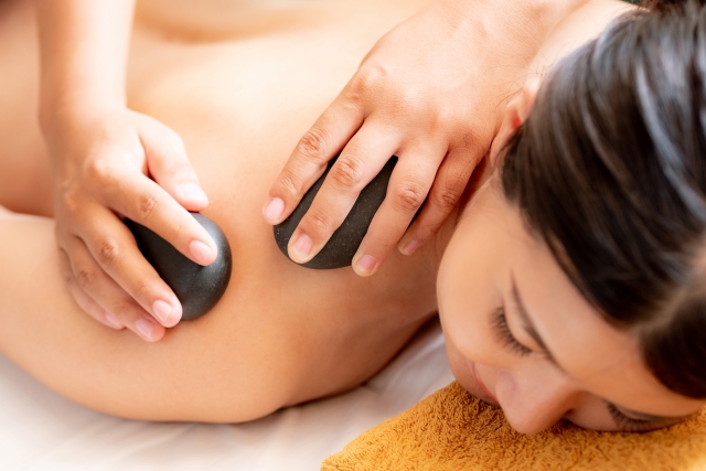 アリゾナ産ホットストーンの温熱効果で筋肉の緊張をゆっくりほぐし、新陳代謝を促進。